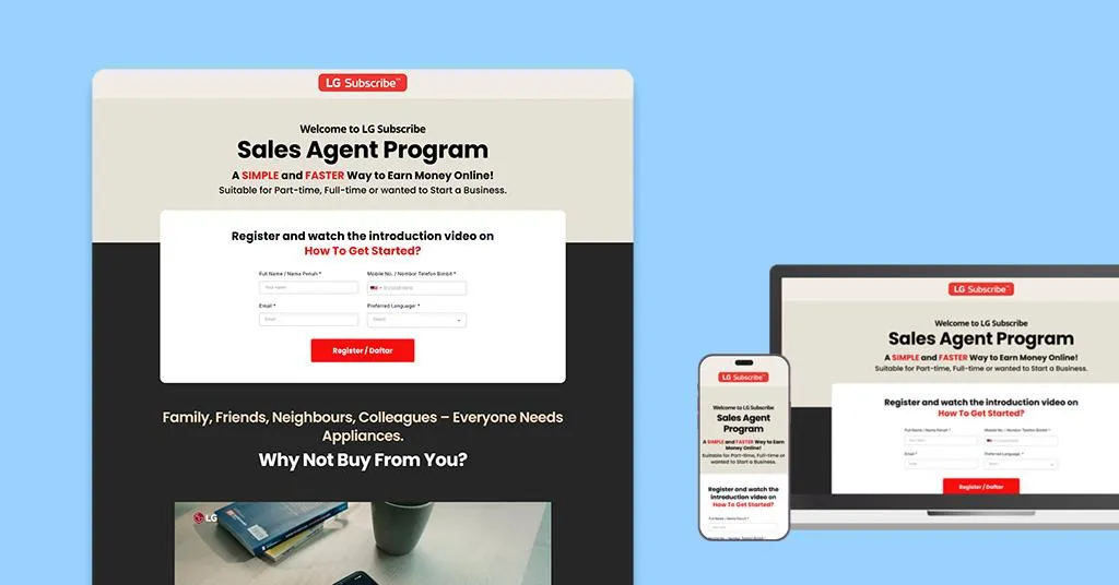 No need to worry about design or setup - we provide you with a ready-made landing page tailored to promote LG business and products. Simply share your page, attract customers, and start generating sales and commissions right away.